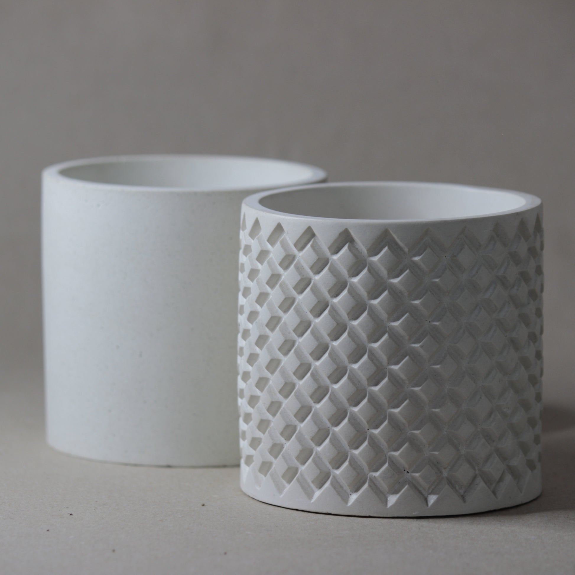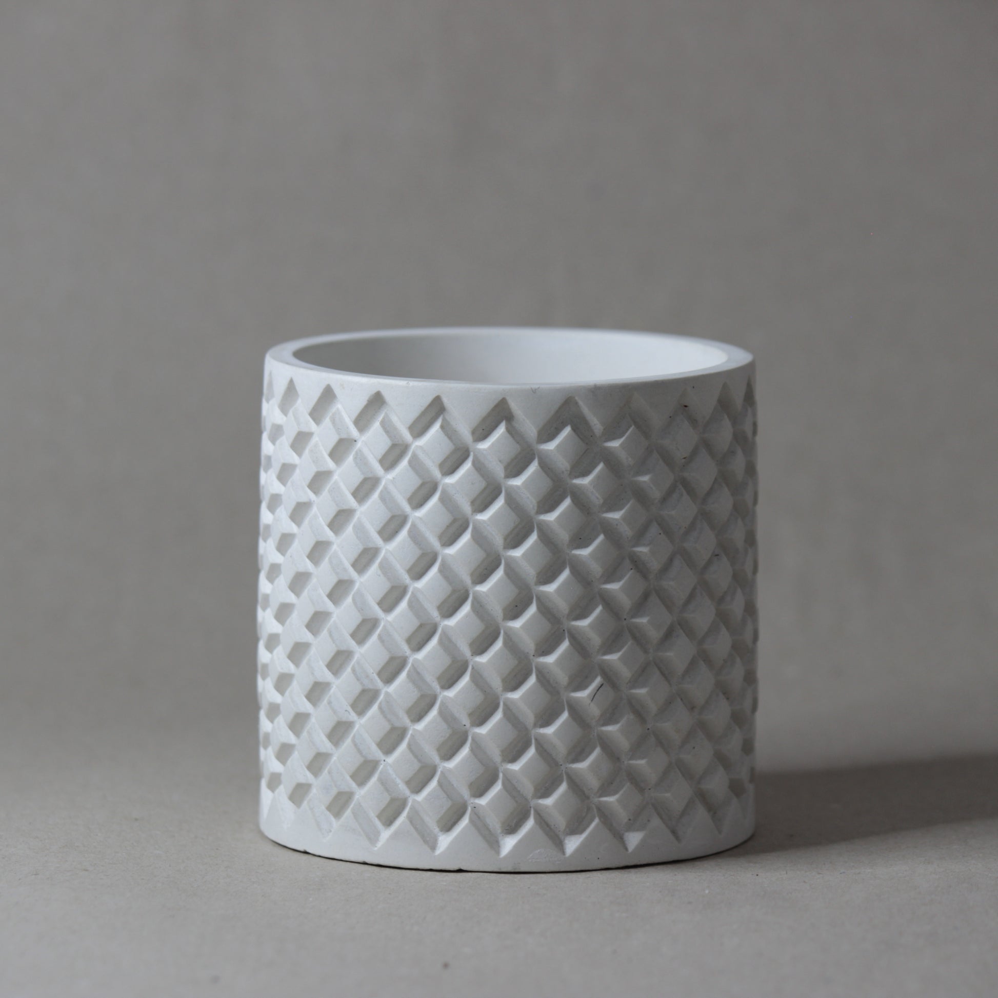 Idéal pour les amateurs de décoration épurée et de matériaux bruts, ce pot quadrillé est une invitation à apprécier la beauté de l’artisanat bétonné.