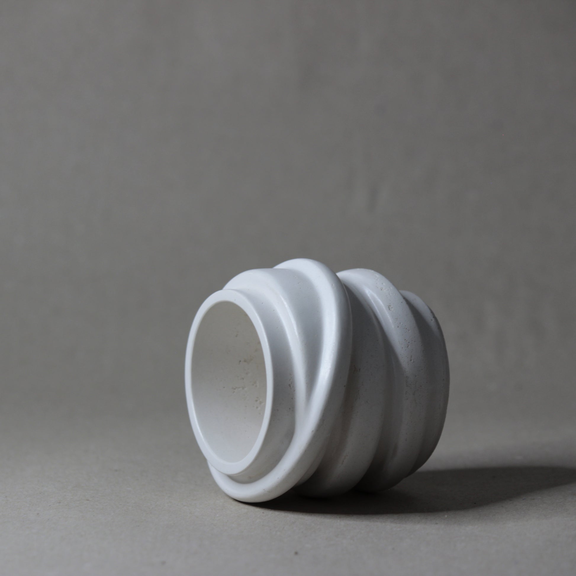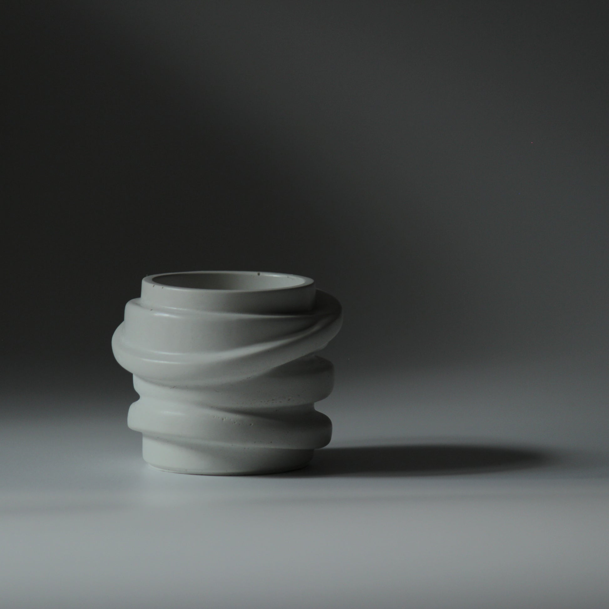 Ce petit pot en béton présente une esthétique unique grâce à ses formes torsadées qui captivent le regard. Avec une hauteur de 7.5cm et un diamètre de 6.6cm il offre une présence discrète mais remarquable sur n'importe quelle surface.