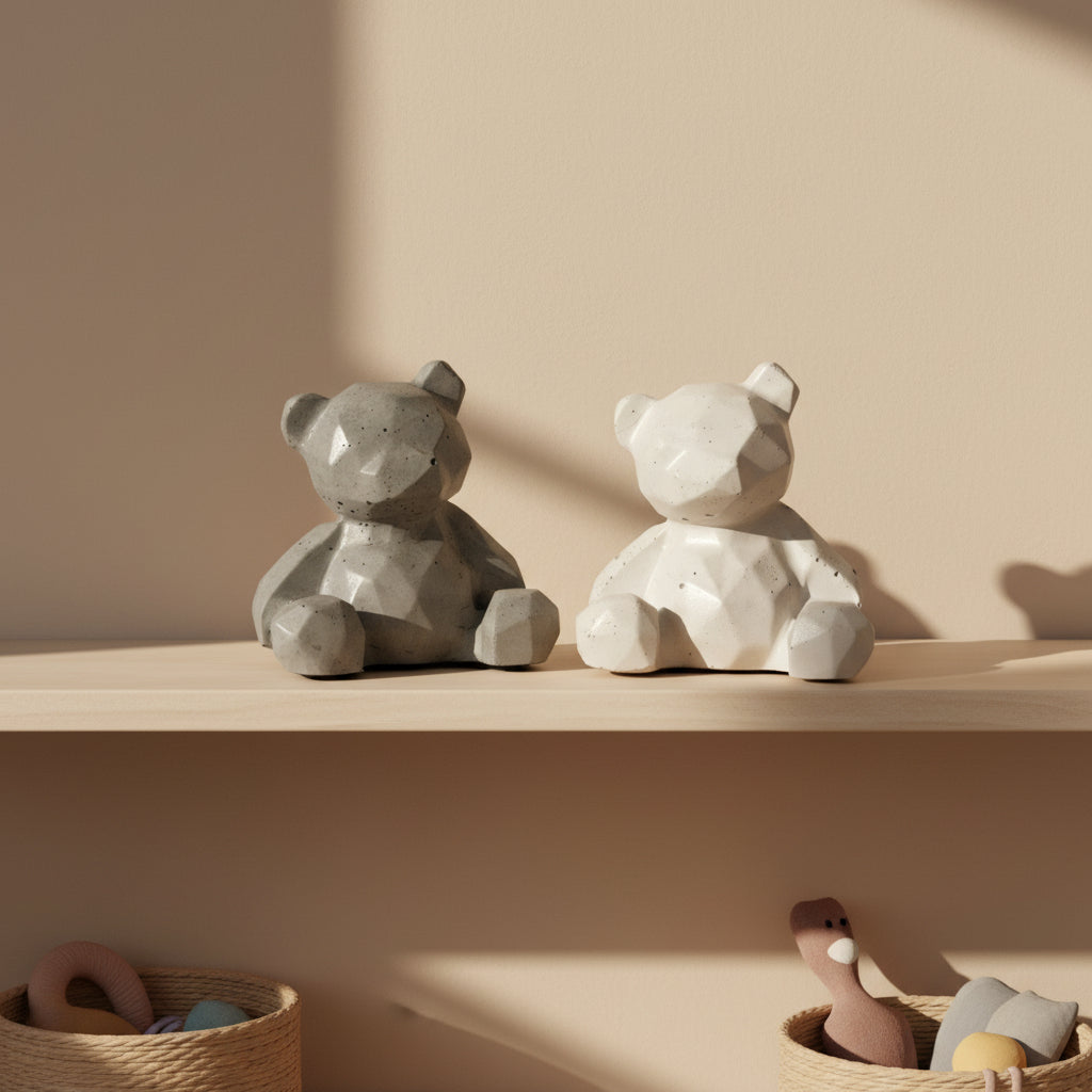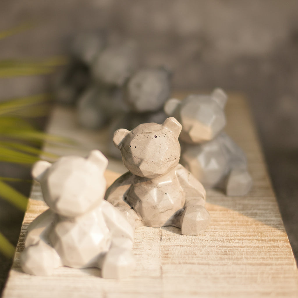 L'ourson en béton BARRY avec ses lignes origamiques incarne une fusion unique entre la douceur et la solidité, mélant la délicatesse de l'ourson à la robustesse du matériau brut.
